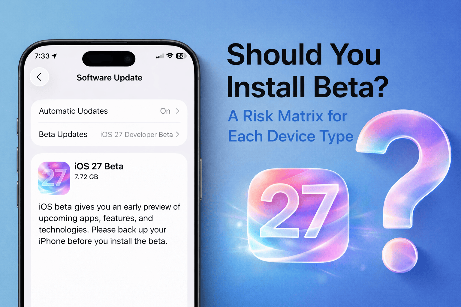 The truth is, the risk level varies dramatically depending on which device you're considering. Installing iOS 27 beta on a spare iPhone? That's relatively safe. Installing watchOS 27 beta on your only Apple Watch? That could leave you without a functional watch for months. Let's break this down device by device.